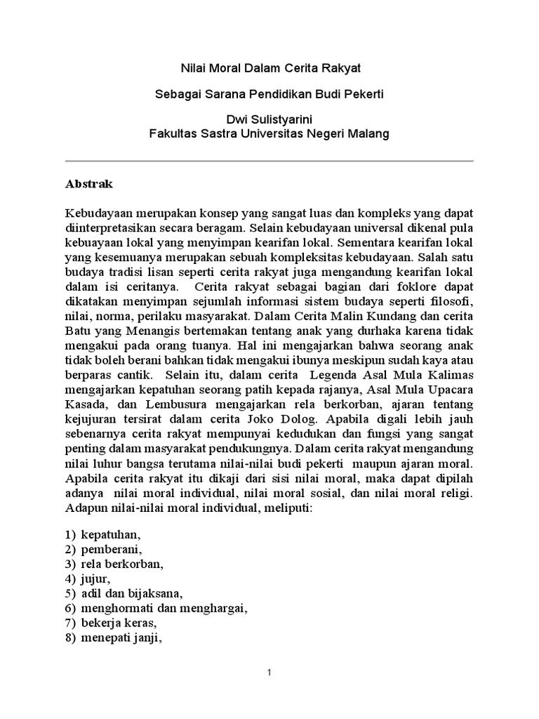 13 Nilai Moral Dalam Cerita Rakyat Pdf